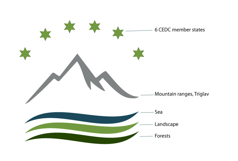 For the purposes of recognition and promotion of the identity of the Republic of Slovenia within the initiative and during the Presidency, a comprehensive graphic image was designed, symbolically combining the natural resources of Slovenia and its role as one of the member states in the CEDC initiative.